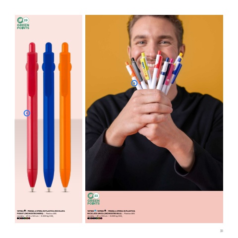 293331107964 PENNA A SFERA IN PLASTICA RICICLATA FIDGET (INCHIOSTRO NERO)Plastica ABS riciclata|%u00d81.5x14.5cm|0.020kgCO2e107965 | 107966 | PENNA A SFERA IN PLASTICA RICICLATA UNICA (INCHIOSTRO BLU)|Plastica ABS riciclata%u00d81x13.8cm0.020kgCO2e