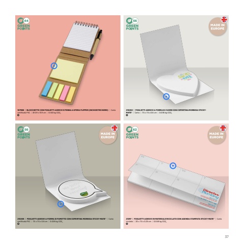 4456566237107988|BLOCCHETTO CON FOGLIETTI ADESIVI E PENNA A SFERA FLIPPER (INCHIOSTRO NERO)Carta certificata FSC|%u00d80.9x13.9cm|0.140kgCO2e210202|FOGLIETTI ADESIVI A FORMA DI CUORE CON COPERTINA MORBIDA STICKYMATE%u00ae|Carta|7.5x7.5x0.6cm|0.036kgCO2e210205|FOGLIETTI ADESIVI A FORMA DI FUMETTO CON COPERTINA MORBIDA STICKY-MATE%u00aeCarta certificata FSC7.5x7.5x0.6cm|0.026kgCO2e21297|FOGLIETTI ADESIVI IN MATERIALE RICICLATO CON AGENDA STAMPATA STICKY-MATE%u00ae|Carta riciclata20x7.5x0.25cm|0.048kgCO2e