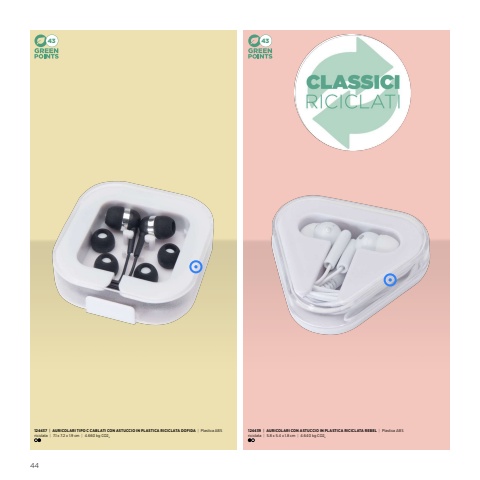 434344124437|AURICOLARI TIPO C CABLATI CON ASTUCCIO IN PLASTICA RICICLATA DOFIDAPlastica ABS riciclata|7.1x7.2x1.9cm4.660kgCO2e124439|AURICOLARI CON ASTUCCIO IN PLASTICA RICICLATA REBEL|Plastica ABS riciclata5.8x5.4x1.8cm|4.640kgCO2e
