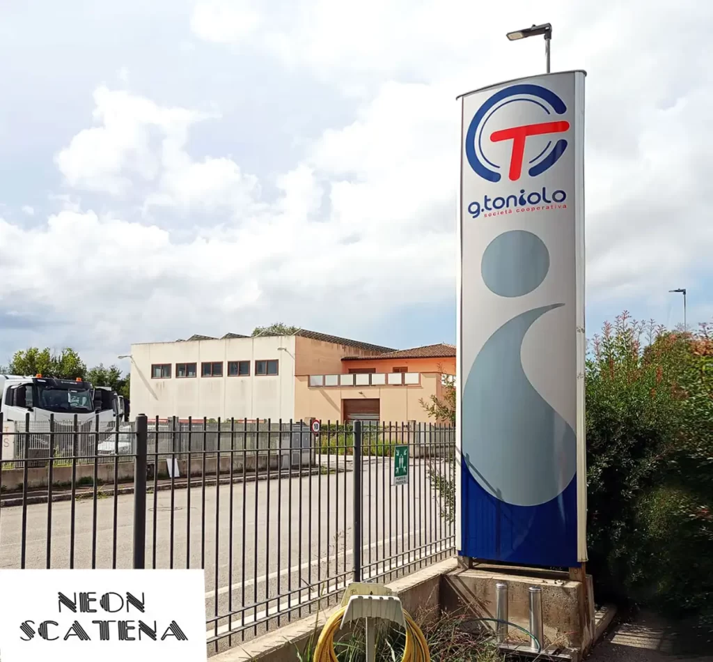 La ditta Toniolo, in occasione del restyling del logo, ha valorizzato il proprio totem, ottenendo una segnaletica di grande impatto e duratura per i propri spazi esterni.