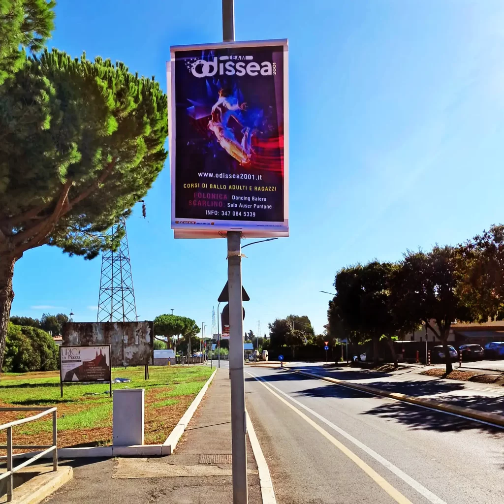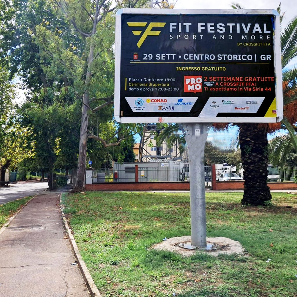 Calici in vetro personalizzati per il “Risveglio delle Cantine” a Semproniano. Stendardi ai pali della pubblica illuminazione per la campagna Odissea 2001 a Follonica. I maxi poster 3×2 per l’edizione 2024 del Fit Festival.